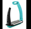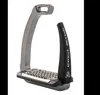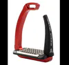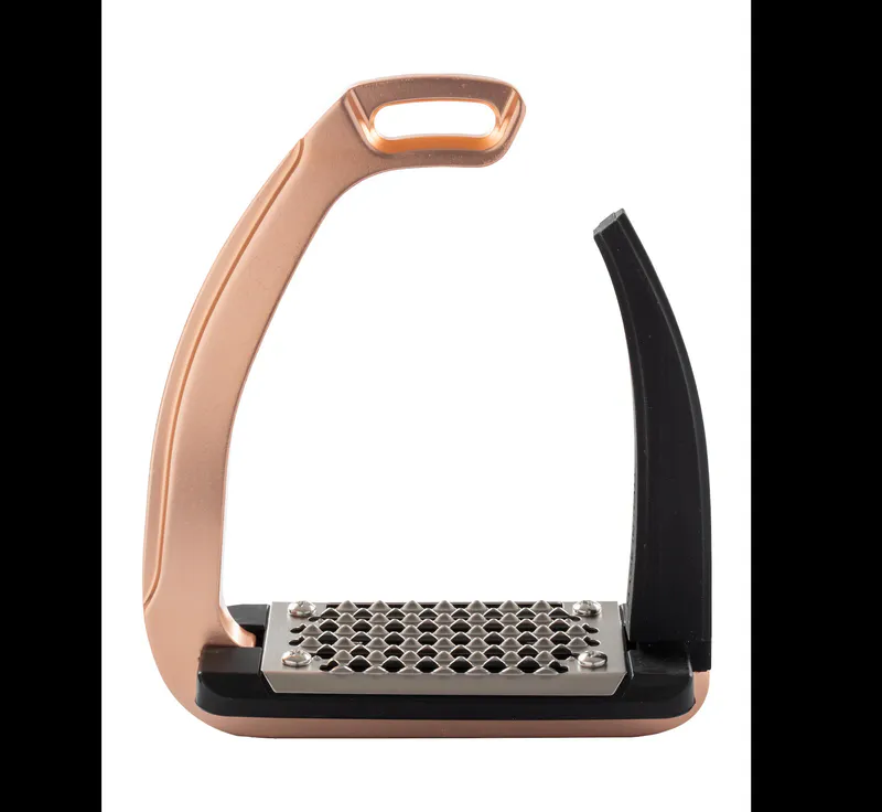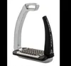 Made with high-tech metal and flexible polymers, they offer greater comfort and reduced rigidity compared to traditional stirrups. The external silicone branch allows for an easy rider's foot release in all directions in the event of a fall. The silicone branches, interchangeable and available in a wide range of colours, are more rigid at the base ensuring greater stability and a perfect fit for the rider. The stainless steel stirrup top with horizontal holes ensures optimal grip in all conditions, protecting the item from corrosion.