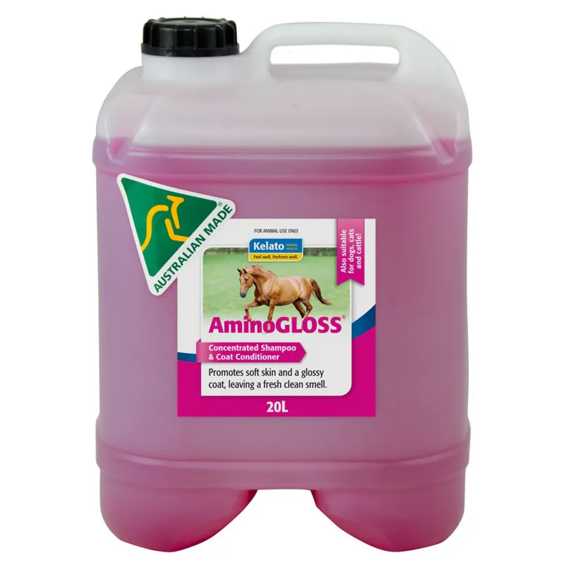 Mix one capful of AminoGLOSS in a 5L bucket of clean water. Wash coat thoroughly with a sponge or brush. Rinse clean and remove excess water with a towel or scraper. AminoGLOSS is concentrated and designed to be low sudsing. For best results do not exceed the recommended concentration.
