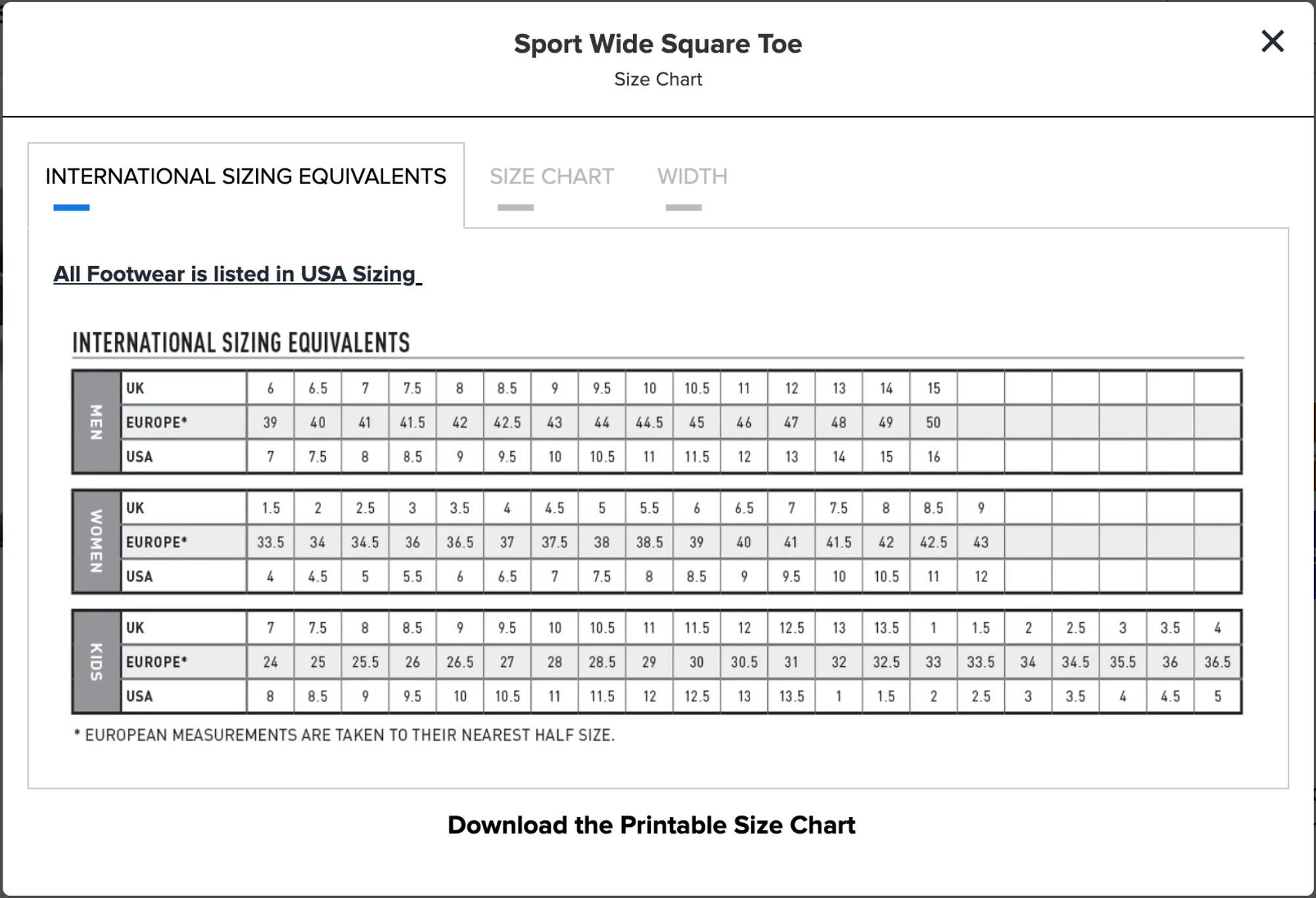 - Wide square toe