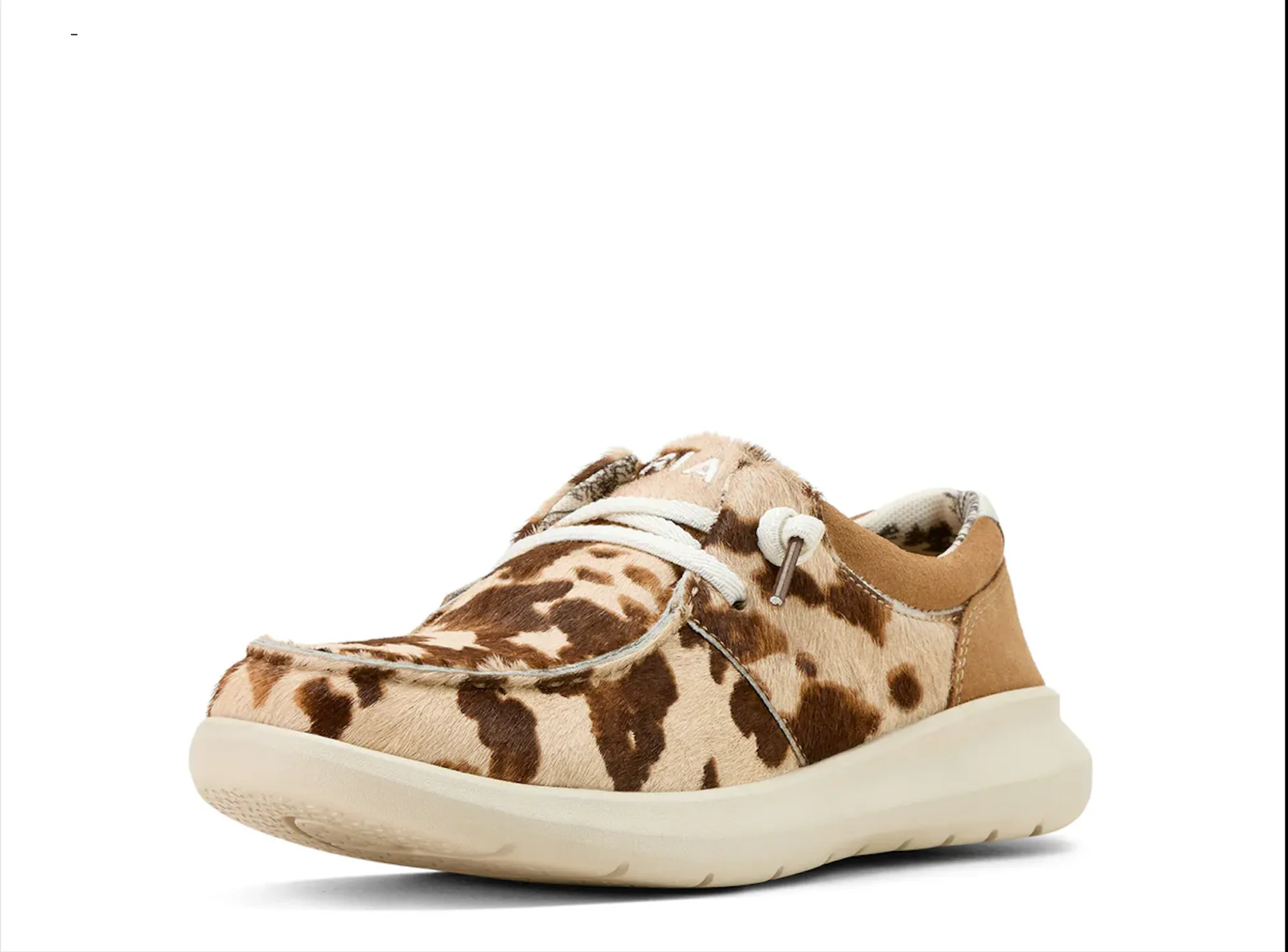Colour: Tan and White brindle hair on/Dark Tan suede. Sizes: US 5.5 - US 11. Width: B.