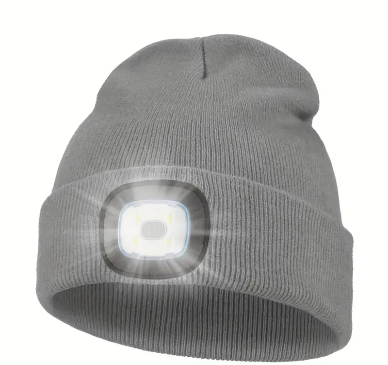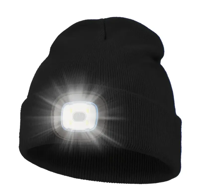 A warm knitted beanie hat with integrated USB rechargeable LED headlight,the intergrated rechargeable headlight gives you approx 4hours of light off A warm knitted beanie hat with integrated USB rechargeable LED headlight,the intergrated rechargeable headlight gives you approx 4hours of light off onA warm knitted beanie hat with integrated USB rechargeable LED headlight,the intergrated rechargeable headlight gives you approx 4hours of light off one charge,and lets you choose between three light modes.e charge,and lets you choose between three light modes.one charge,and lets you choose between three light modes.A warm knitted beanie hat with integrated USB rechargeable LED headlight,the intergrated rechargeable headlight gives you approx 4hours of light off one charge,and lets you choose between three light modes.