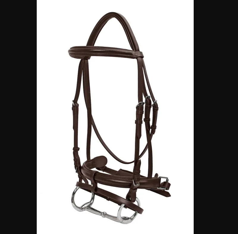 Elegant Dressage bridle with padding on the crank noseband to distribute pressure.