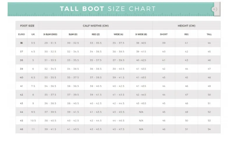 FOOT SIZE CALF WIDTHS