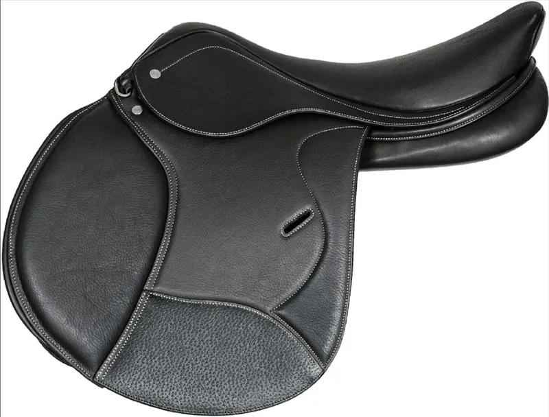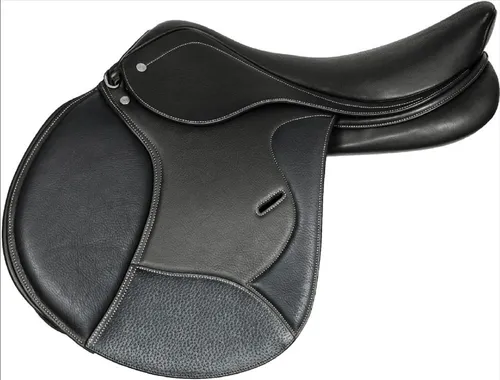 Built for balance, grip, and precision, the Avenger Jump Saddle combines modern performance features with refined European styling. The medium-deep seat offers a secure yet unrestrictive feel, paired with shaped knee pads and Velcro-adjustable knee and thigh blocks to support the rider’s position. Wool-flocked panels with a broad contact area and felt lining ensure close, even contact with the horse’s back, while the wide channel and excellent wither clearance promote comfort and freedom of movement. The calfskin-covered flaps provide grip where it counts, reinforced with solid leather wear points for added durability. This Cavallino Saddle is finished with contrast stitching, a three-point girthing system, and a lightweight polymer-moulded tree, the Avenger is built for serious jumping.