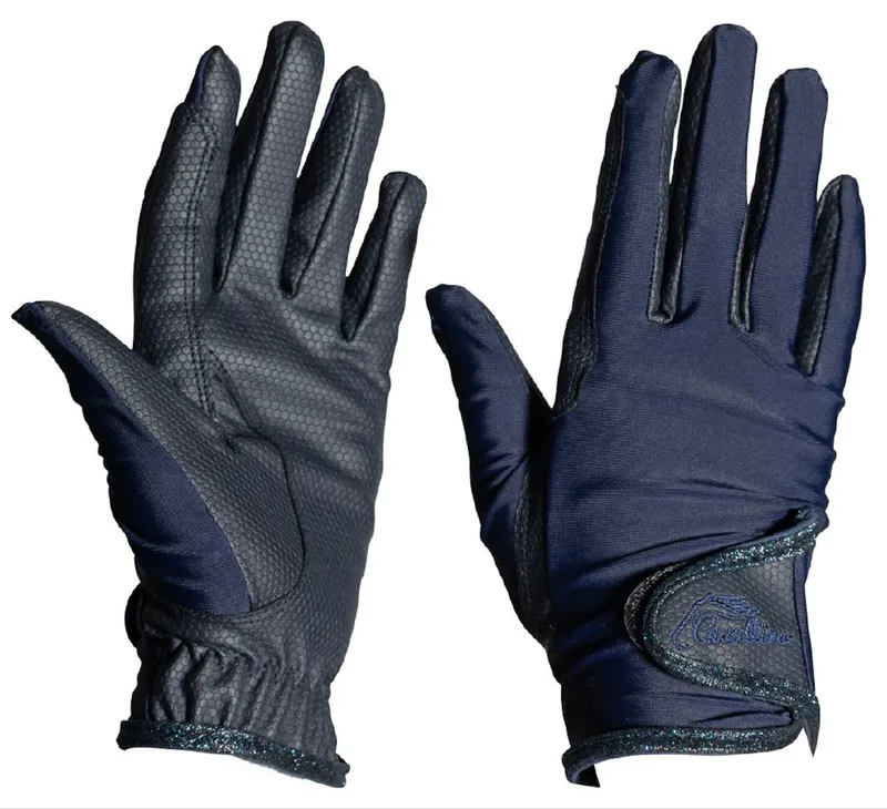 Add a touch of sparkle to every ride! Designed for young riders, this glove combines style, comfort, and functionality. The lightweight, breathable fabric ensures all-day comfort, while the textured palm provides a secure grip on the reins. Featuring glitter accents on the wrist and closure for a fun, fashionable look, this glove is perfect for schooling, lessons, or casual rides.