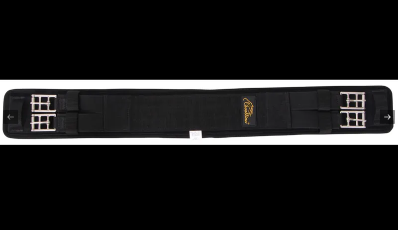 A double buckle, double end elastic girth with removable Anti-Slip, breathable backing and stainless steel buckles.