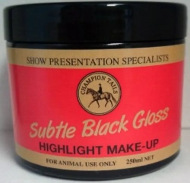 Subtle Black Gloss is great for the horses that only need a hint of black, eg. Greys, Duns, light chestnuts or hunters. Does not run, pill, bleed or ball on hot days. Does not separate in the pot!