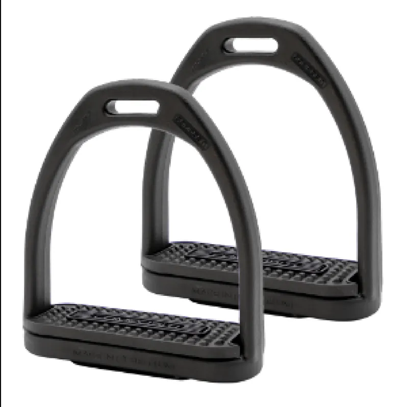 This strong but lightweight 2 bar stirrup is made from super tough resins, produced by DuPont du Nemours, who guarantee its properties.