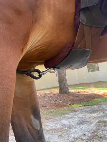 Running Martingale Strap can be added to your Double Neck Strap with leather bands that come with your martingale. Buckles at the girth and the rings make length adjustments easy as well.