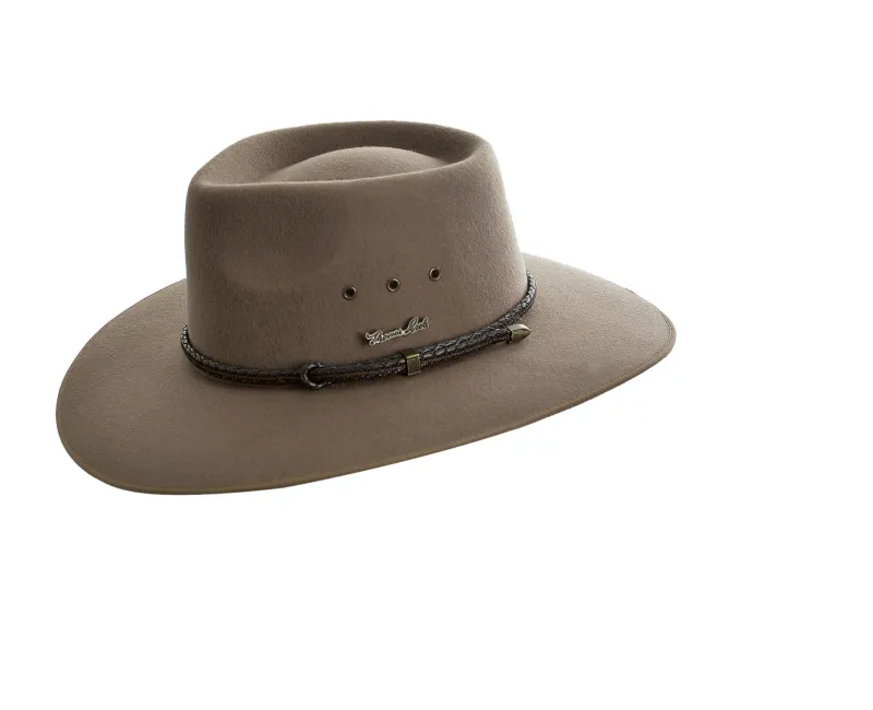 Features: Braided hat band, brass eyelets for breathability, fully lined crown, leather sweat band, shower proof, Thomas Cook metal logo pin. Detachable feather.