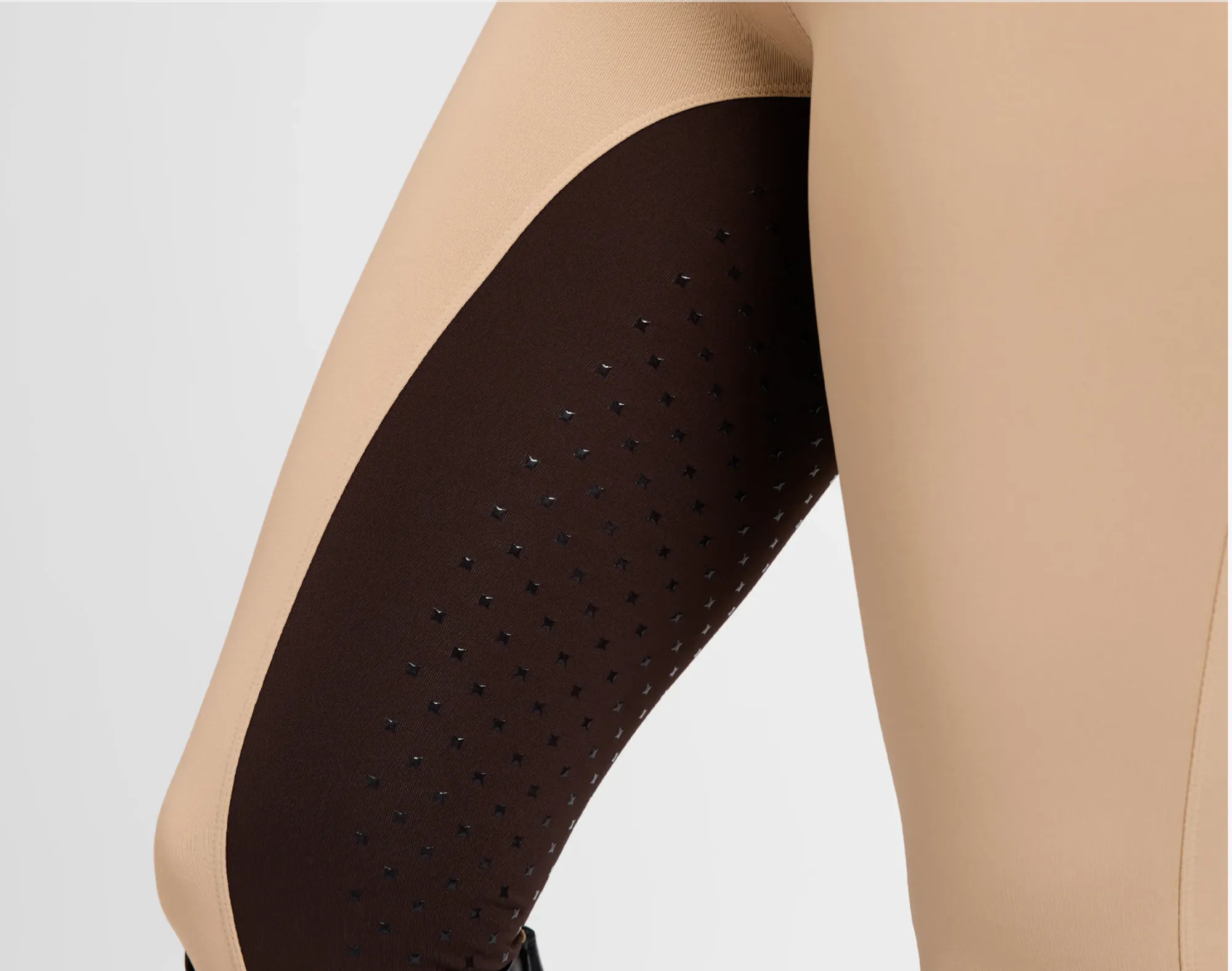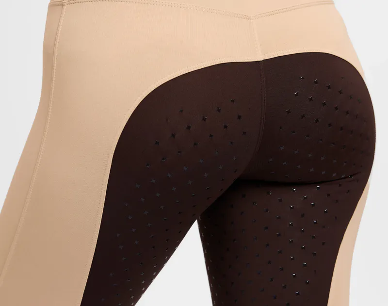 Wide, supportive waistband ensures a secure, flattering fit, while the full seat silicone grip offers stability & control in saddle.