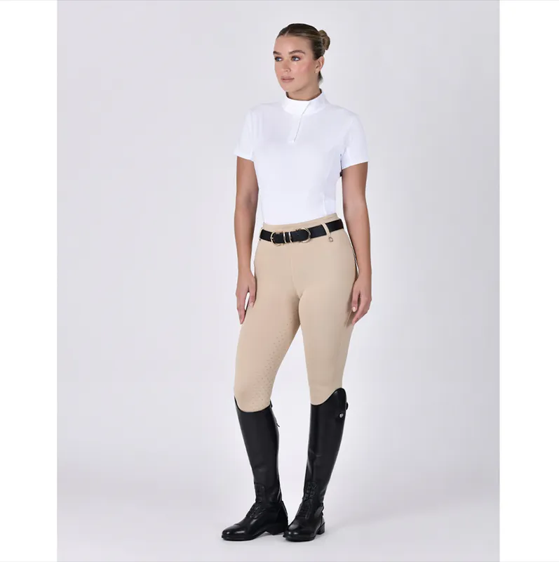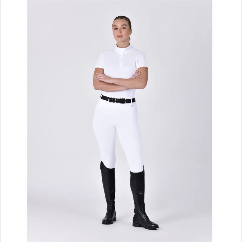 Meet the Dublin Form Competition Riding Tight. Designed for peak performance and all-day comfort, these tights are made with quick-dry, moisture-wicking fabric to keep you dry and comfortable. The wide, supportive waistband ensures a secure, flattering fit, while the full seat silicone grip offers stability and control in the saddle. Crafted from four-way stretch fabric, these tights provide ultimate flexibility to support you in competitions.