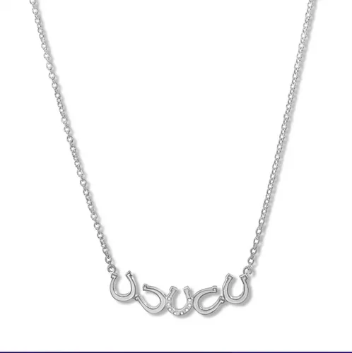The five horseshoes sit in a line at the end of the sterling silver chain. The chain is 45cm long so this necklace sits nicely on the chest. For an everyday equestrian piece of jewellery, this necklace is perfect. The necklace is crafted from sterling silver.