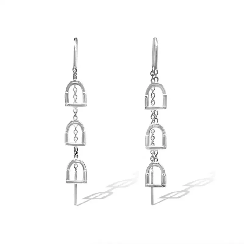The Breeze stirrup thread earrings are made from sterling silver & feature the thread style earring with silver chain and silver stirrups. The earrings are a modern and very on trend style for equestrian jewellery.
