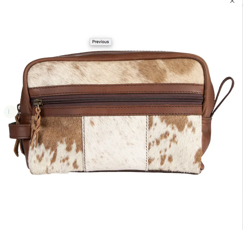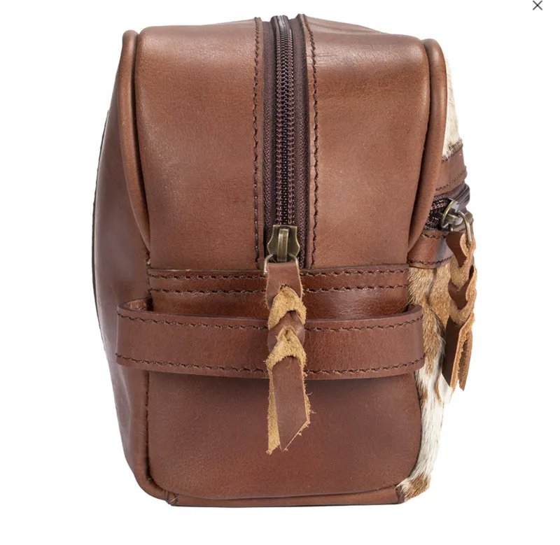 Fort Worth Cowhide Leather Toiletry Bag- Brown & White