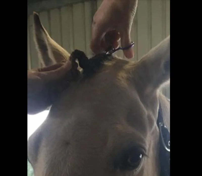 Fasten and finish that forelock easily with these scissors. Simply secure the end of your forelock plait, push the closed forelock fastening scissors through the length of the braid, open the scissors , grab the bottom of the plait and pull back up through the braid for the perfect finish. Also perfect for application of Hairy Pony 'Fake It'.