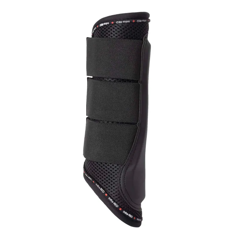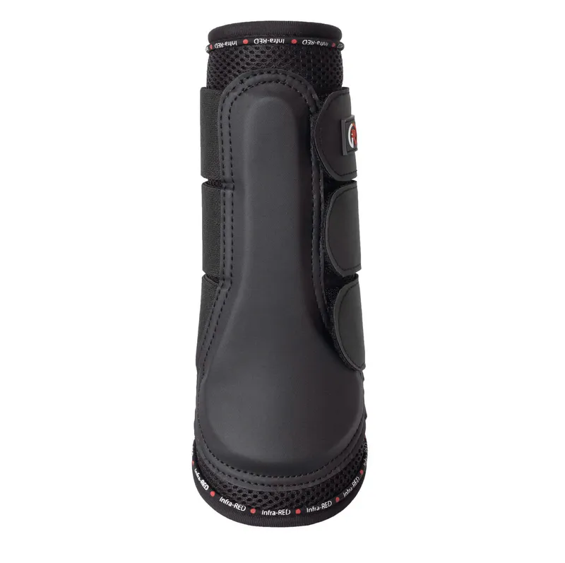 Breathable brushing boots with infrared fabric lining and a durable ballistic nylon strike guard. The ceramic particles woven into the lining fabric absorb the body energy of the horse and release far-infrared rays that penetrate deeply through the skin and have a vitalising effect on blood circulation and, thus, mass exchange in the leg. This prepares the leg perfectly for the upcoming strain of muscles and joints during training.