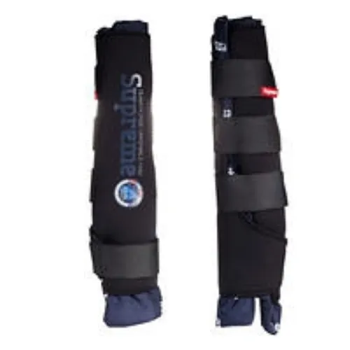 The Horze Supreme Stable Boots feature an optimal design that provides good breathability, shock absorption and support for the legs they come with detachable pillows. Velcro Closure, Shell 100% neoprene, inside cusion 100% poyester. Machine Wash