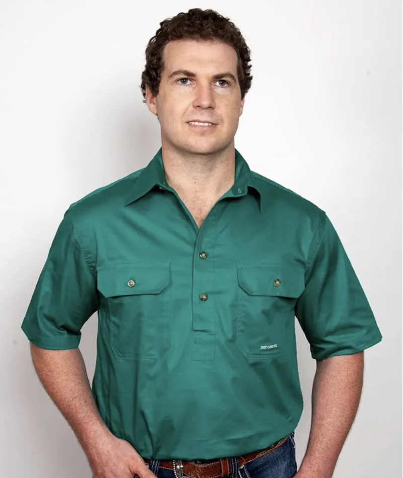 Just Country Mens Adam half Button Short Sleeve Shirt