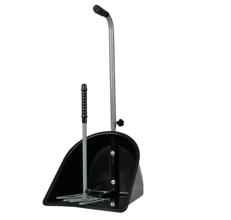 The Kincade Adjustable Stable Manure Collector is a gamechanger! Made so you can easily adjust the height on both the rake and scoop for easy use and storage which means you don't have to bend down low all the time