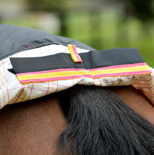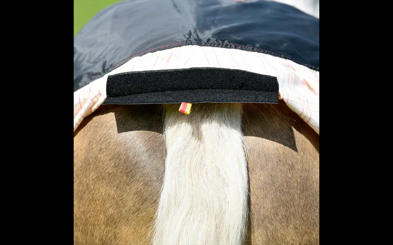 Large tail flap with tail bag attachment.