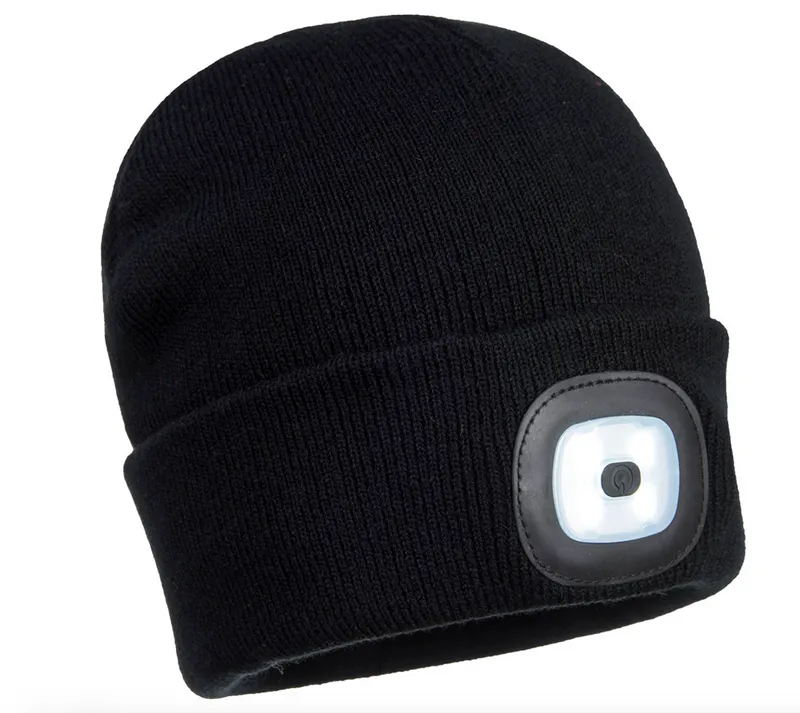 This high-performance acrylic beanie hat features two removable LED lights on the front and back for all round visibility. The rechargeable LED lights can be charged in a USB port. Ideal for walkers, cyclists or those working in low light conditions.