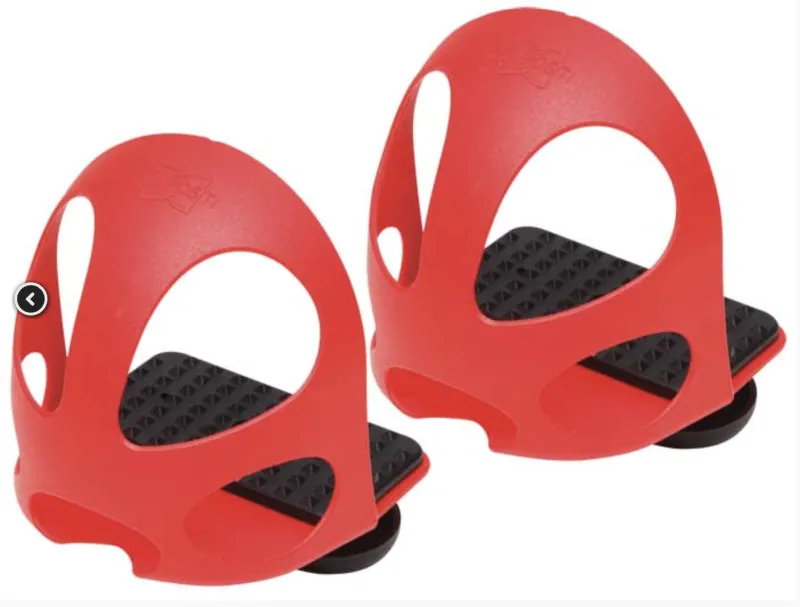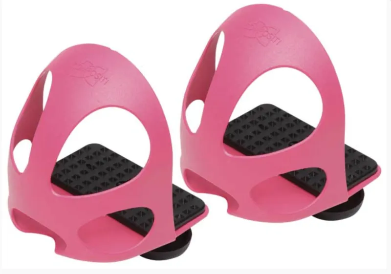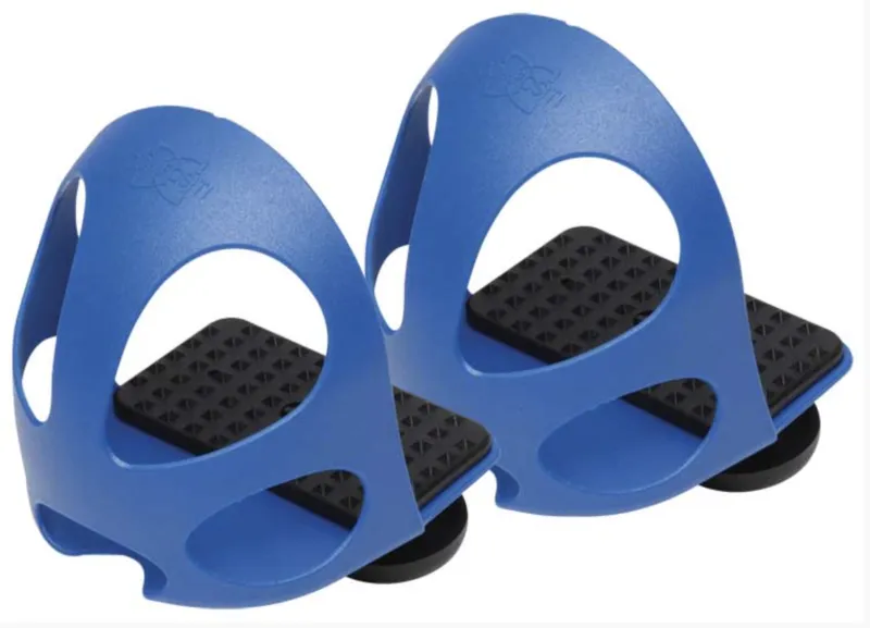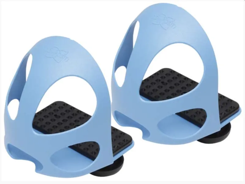 Shown here fitted to Compositi 2 Bar Stirrups. The Large size toe cage is suitable for use with the Adult stirrups - available in Black with Black, Royal Blue, Red, Light Blue and Pink treads.