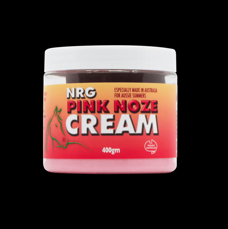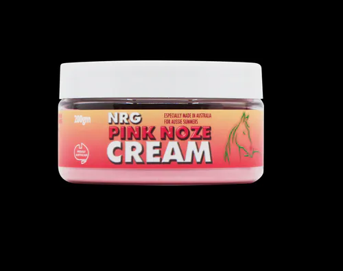 NRG Pink Noze is a natural, shield cream for horses with pink and white sensitive skin areas. Developed specifically for hot, dry and windy Australian conditions, Pink Noze contains Vitamin E and natural oils that absorb into the skin leaving a natural lasting barrier.