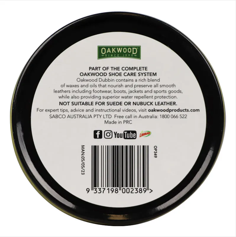 Oakwood Neutral Dubbin 80g is a superior blend of waxes and oils that nourish, preserve and waterproof all smooth leather.