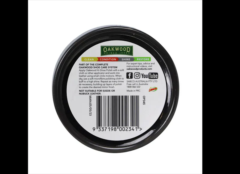 Oakwood High Gloss Shoe Polish Black 65g is a superior, nourishing soft polish with carnauba wax to cover scuff marks and perfect for achieving that mirror-look shine.