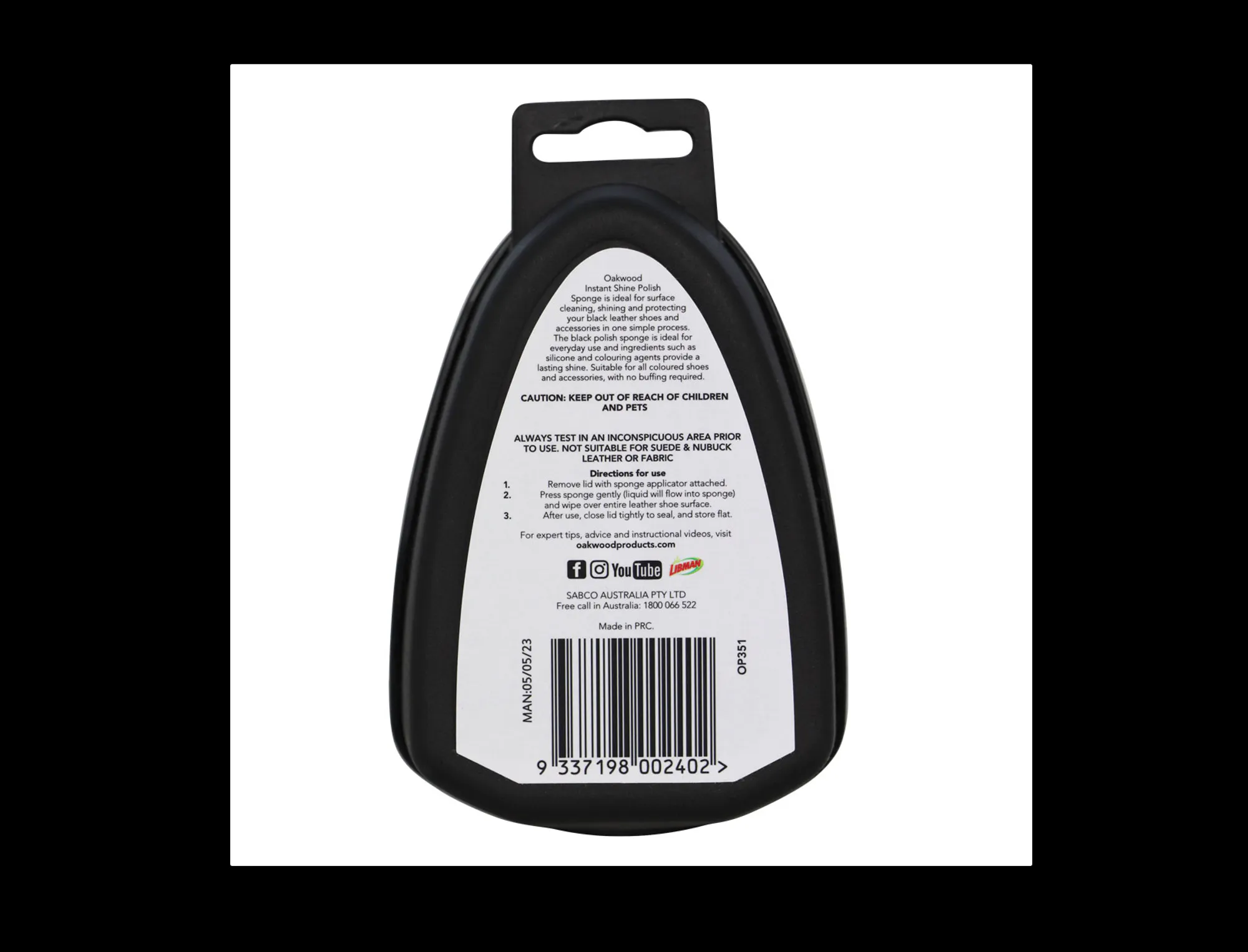 Oakwood Instant Shine Polish Sponge Black is ideal for surface cleaning, shining and protecting your black leather shoes and accessories in once simple process.