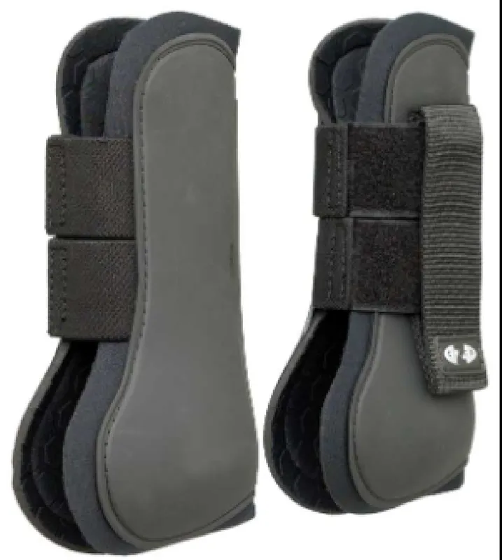 The Zilco open front boots are made using hard wearing PU shell. They are fastened using double hook and loop straps which are fixed both horizontally and vertically for added security. They are lined with a textured hexagon print material to improve airflow and grip on the leg.