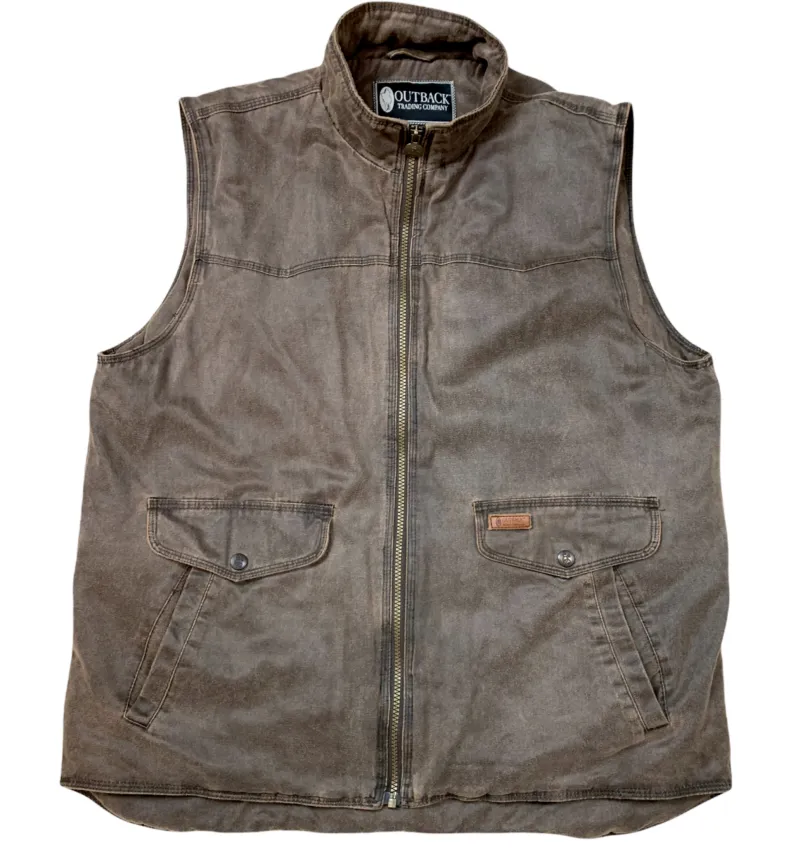 Our popular Landsman Vest sports western yokes, a stand up collar and dual entry hip pockets. An extended back and inside security pocket complete the features. Lined with our warm and cosy signature Outback fleece this vest is sure to keep you warm.
