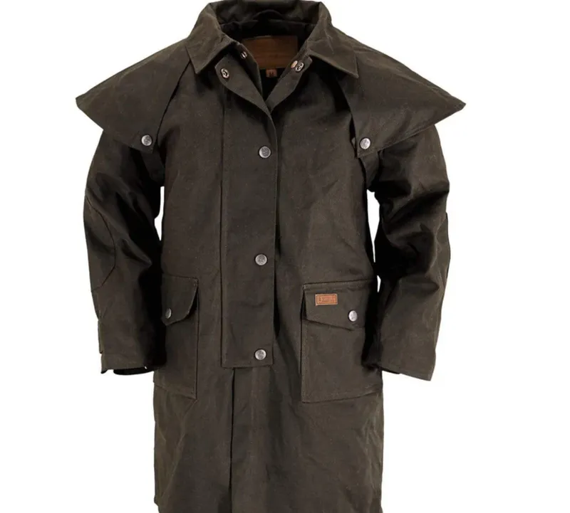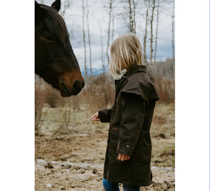 We haven't forgotten about your little ones! Our Child's Oilskin Coat has a cotton twill lining, detachable cape and a rear saddle gusset and leg straps. It also has a double-domed front opening with adjustable drawstring waist. A must for the little "farmer".