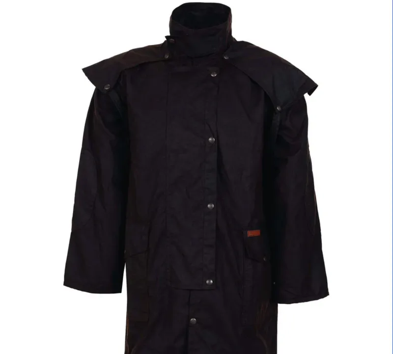 A perennial favourite, our Oilskin Short Coat features cotton twill lining, detachable cape, dual entry front pockets, double-domed opening and rear domed saddle gusset. Complete this with adjustable throat latch around the collar and you have the ideal coat to keep you warm and dry whilst out in the fields.