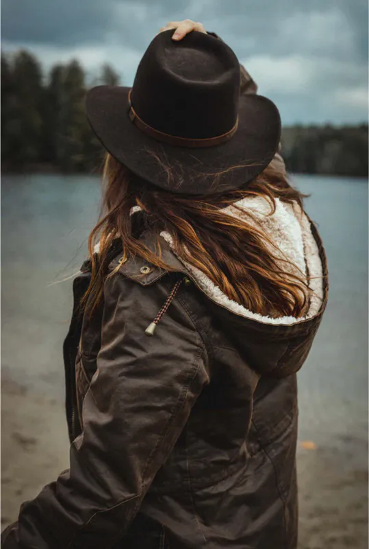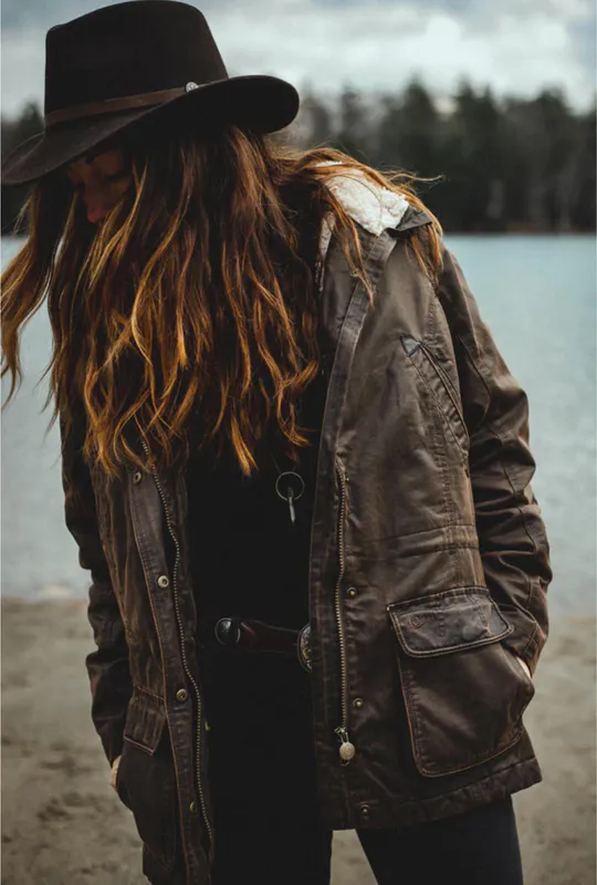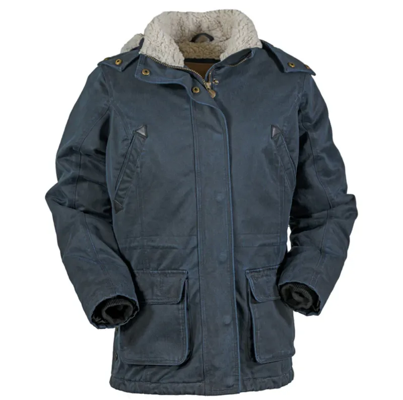 Keep the cold out in our Woodbury Jacket! Our vintage look Woodbury Jacket is made from our Canyonland fabric with a warm Sherpa lining. This jacket comes with a removable hood and dual entry hip pockets. Adjustable drawcord for a shapely fit. Domed storm flap over a 2-way zip.