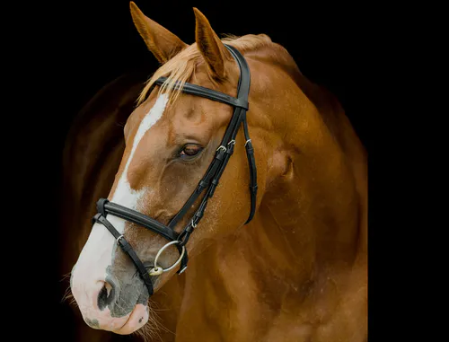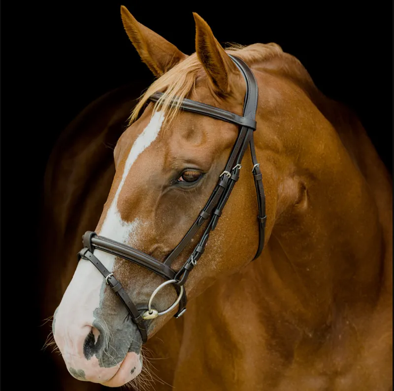Raised and padded browband and noseband. Removable flash strap. Buckle billets.