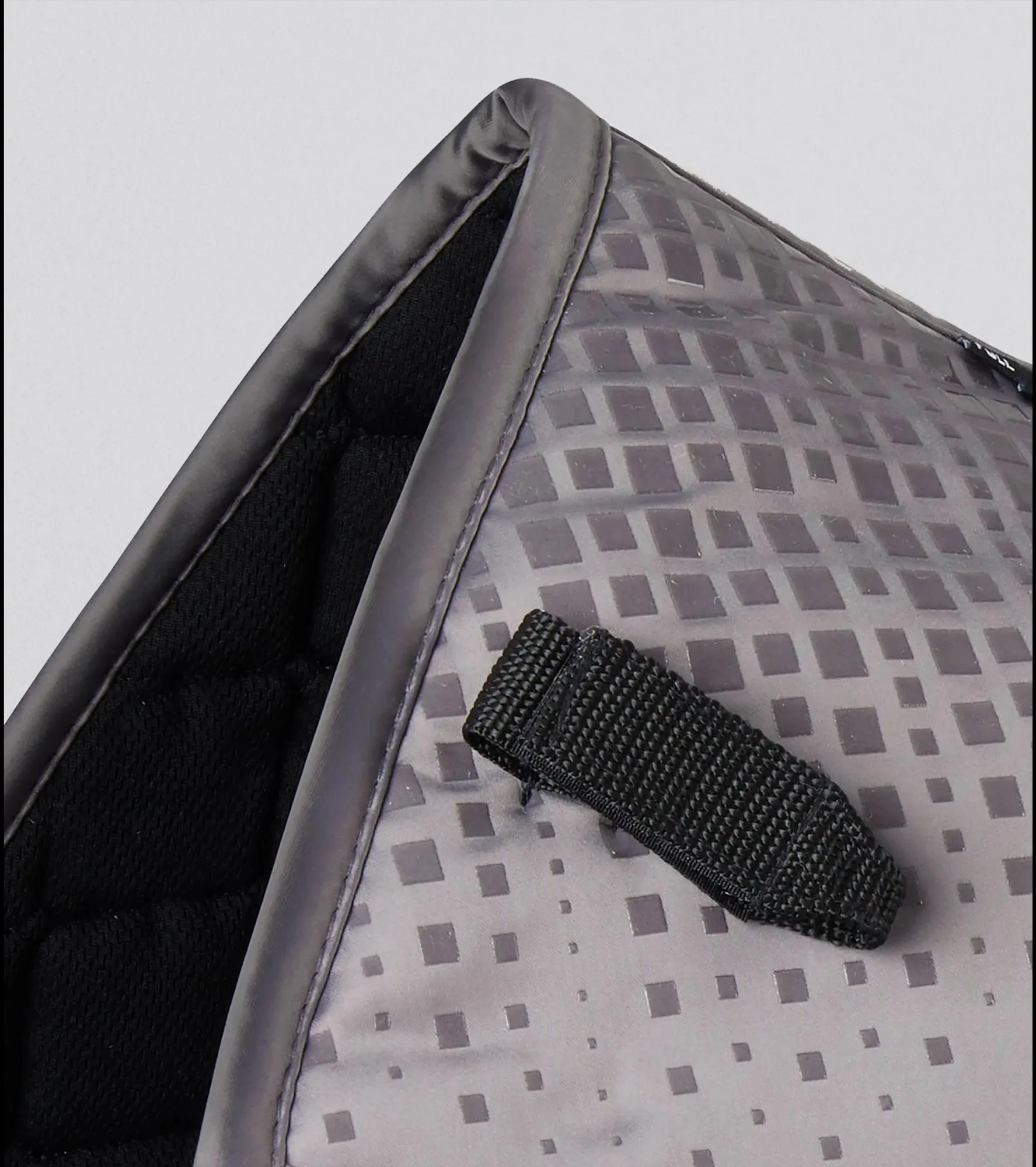 A sophisticated satin GP/Jump saddle pad with anti-slip gel and signature styling. Colours: Grey, White, Black, Navy, Wine or Brown.