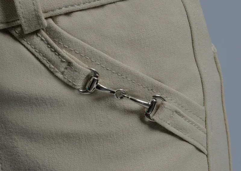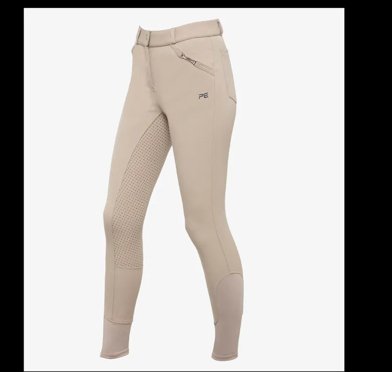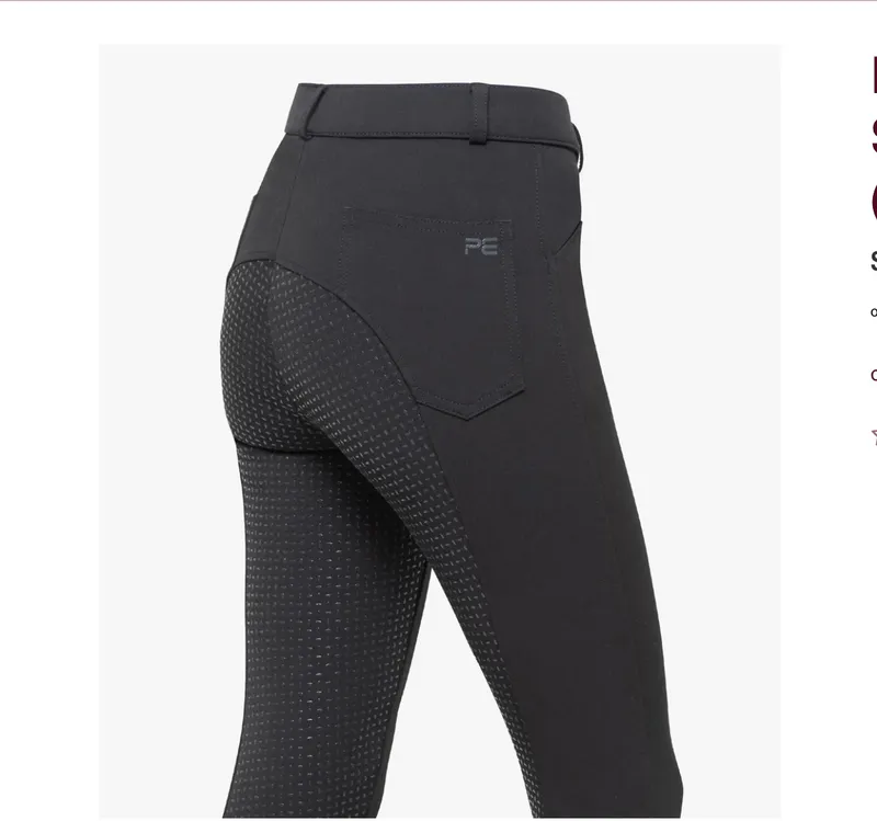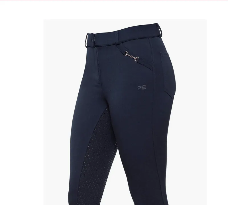 Featuring large traditional front pockets which are embellished with a modest snaffle link detailing the edge and subtle PE branding. The added back pocket design offers a functional, competition aesthetic for show days.