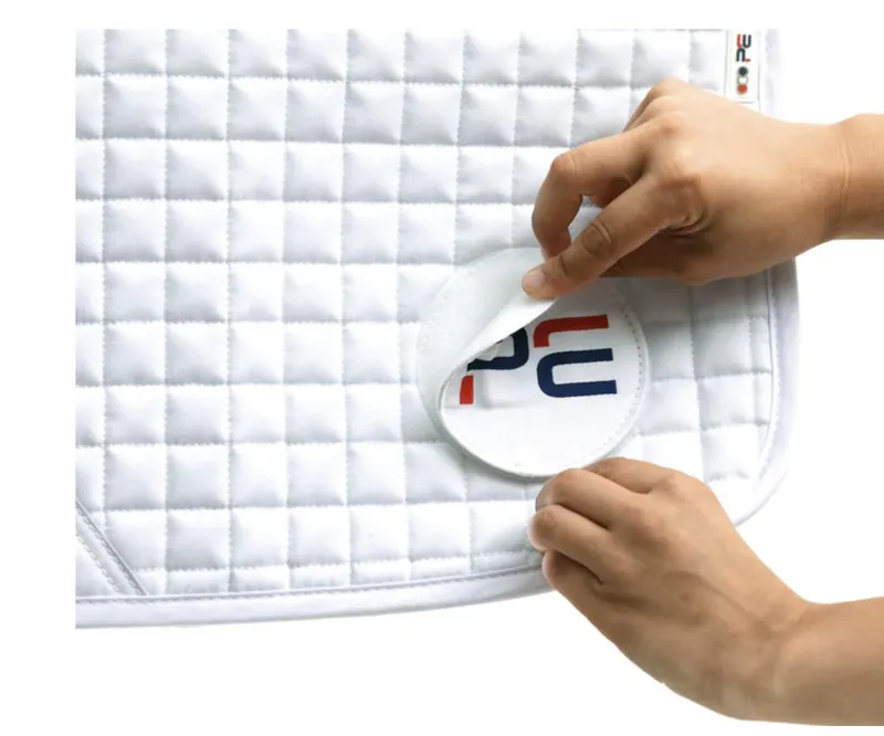 Each close contact cotton dressage competition saddle pad comes with 2 x PE patches and 2 x number patches that are attached either side of the pad onto integrated Velcro patches, compliant with the new British Dressage requirements.