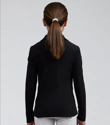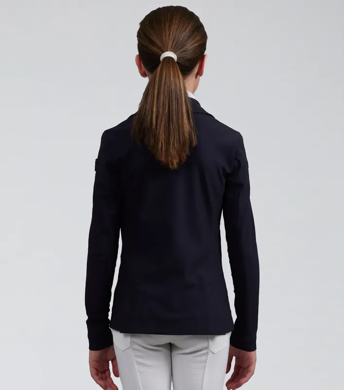 This girls competition jacket is ideal for a wide variety of equestrian disciplines. This jacket is crafted from a lightweight sleek material that feels luxuriously soft to the touch and comfortable against your skin. The construction provides multidirectional stretch for enhanced freedom of movement whilst offering improved breathability, perfect for the intensity of competition.