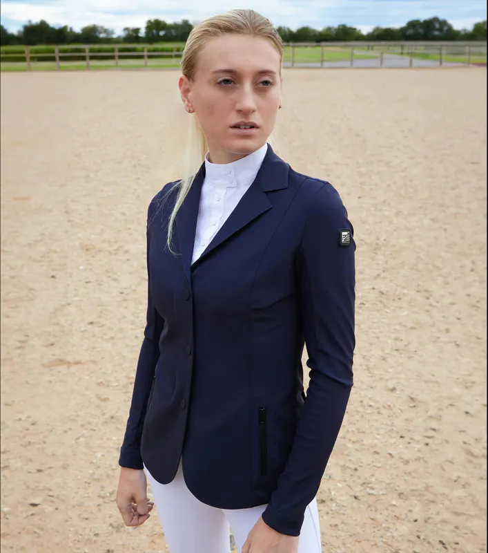 This ladies competition jacket is ideal for a wide variety of equestrian disciplines. This jacket is crafted from a lightweight sleek material that feels luxuriously soft to the touch and comfortable against your skin. The construction provides multidirectional stretch for enhanced freedom of movement whilst offering improved breathability, perfect for the intensity of competition.