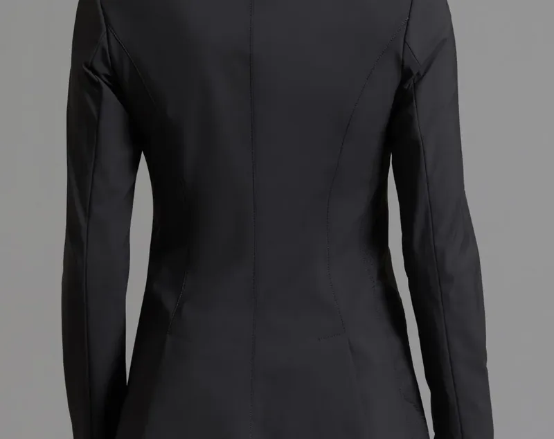 The lightweight construction of this competition jacket feels luxuriously soft to the touch and comfortable against the rider's skin. The traditional appearance of this show jacket is technically enhanced with the incorporation of laser perforated panels along the side of the body for increased ventilation.