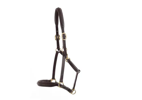 Crafted from premium grade leather this softly padded head collar is perfect for everyday use or competitions. The padded poll piece and nose band work together to provide enhanced comfort for your horse. For ease of use the head collar is easily adjustable to either side of the head and around the nose. A secure throat clip and durable brass fixtures complete this all-round quality halter.