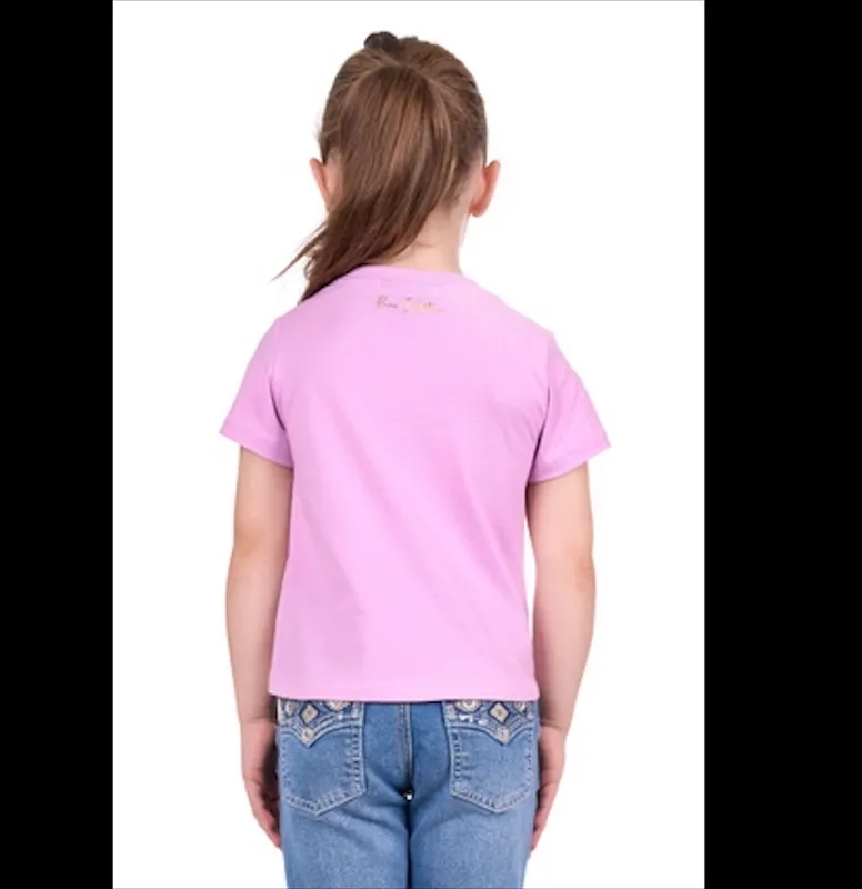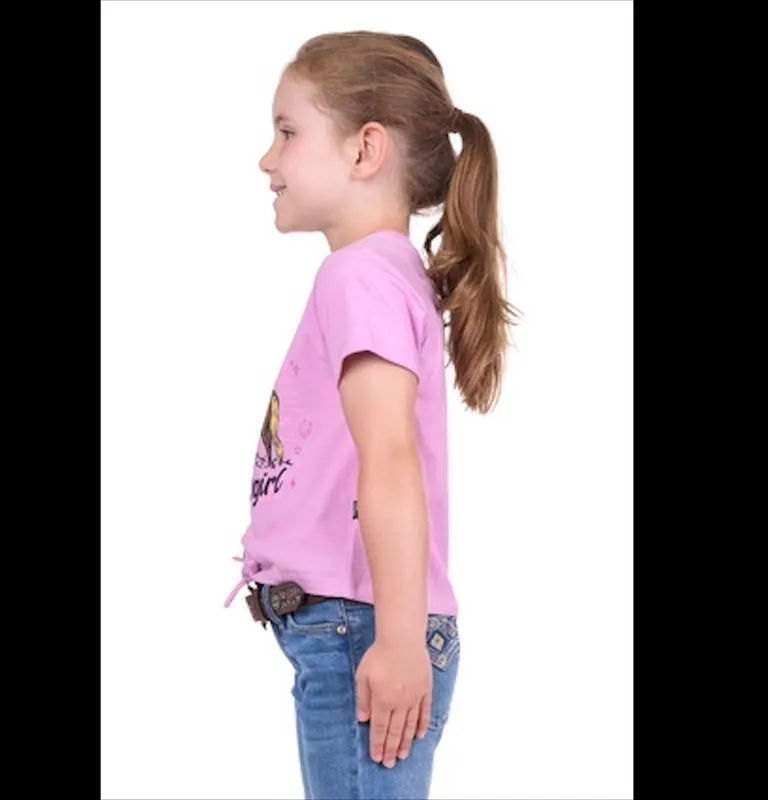 Fashion tee with tie knot detail at front hem, large front feature print with diamanté detail (diamanté detail on sizes 4 - 14 only), rib neck band, Pure Western logo pip on side seam.