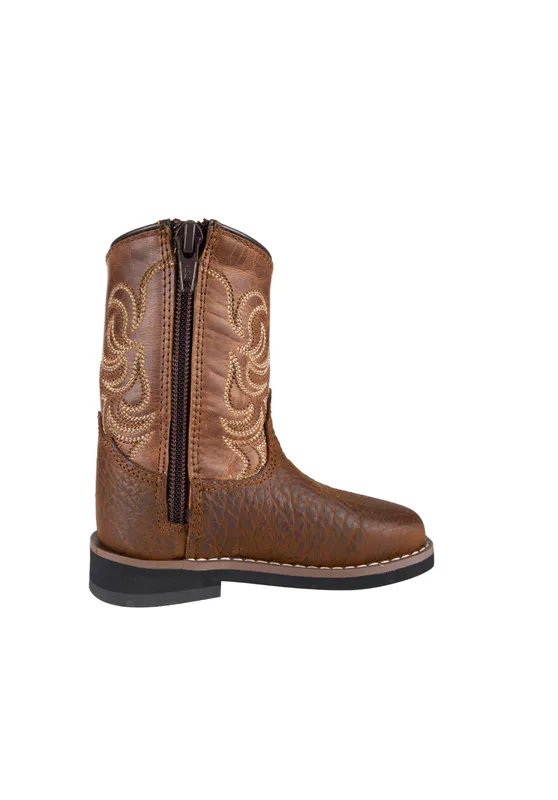 Grained leather upper with shaft and toe stitch detail, synthetic lining, padded innersole for comfort, stitched durable square toe rubber outsole, side zip for easy access