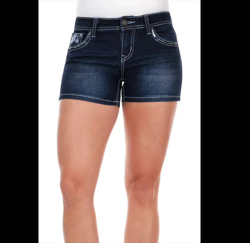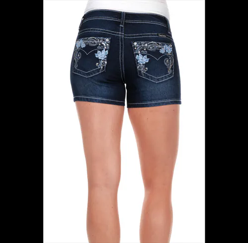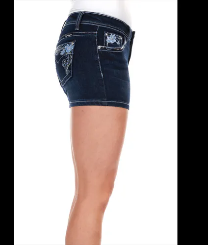 Stretch for comfort, mid rise, logo shank button, diamante rivets, woven logo badge on back yoke, PW embroidery on coin pocket, feature embroidery on back pockets and front scoop pockets, contrast all over topstitch.