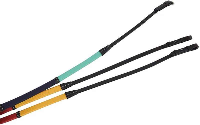 Rainbow Reins Rainbow Reins feature color-coded sections with rubber grip to help correct the rein length