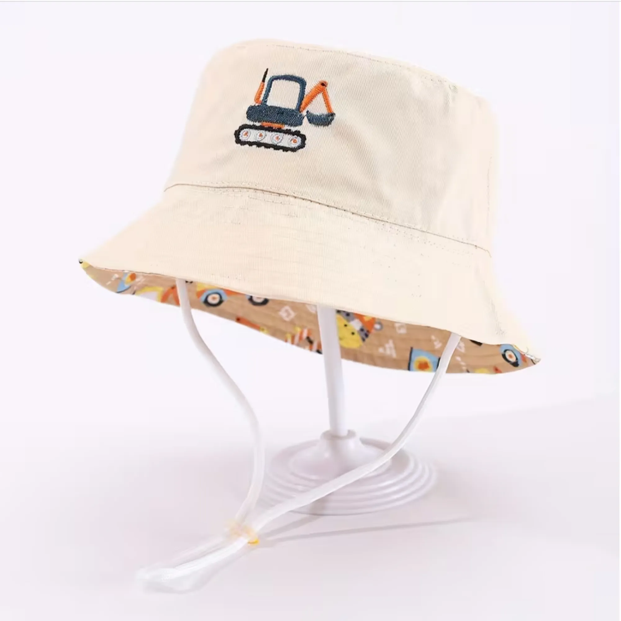 UPF Sun Protection Bucket Hat for kids, with an adjustable drawstring and wide brim for the perfect summer fit.