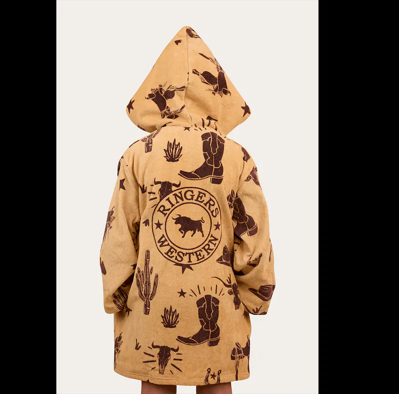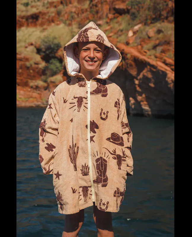 Thoughtfully created from a luxurious blend of plush cotton velour, this handy towel offers warmth and comfort whilst being highly absorbent. The zip-through, hooded design is practical and functional, allowing for easy wearing whilst on the move - perfect for rugging up after a day at the beach or heading home from swimming lessons. An all-over Western inspired print adds a playful, country touch that is sure to make drying off the best part of any aqua adventure.